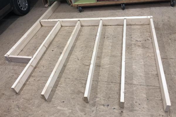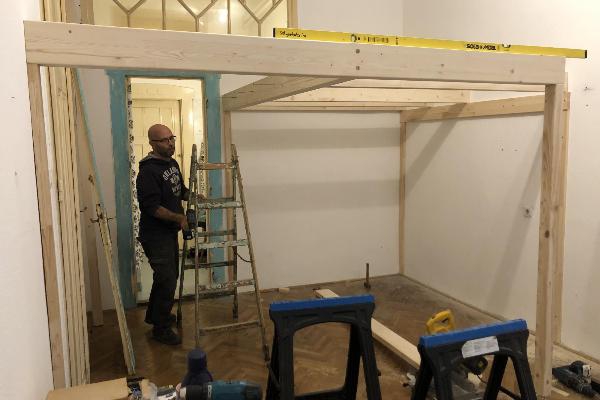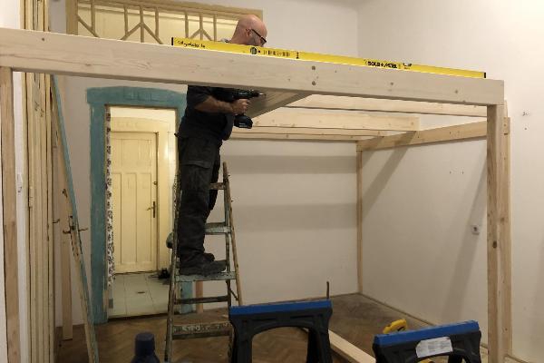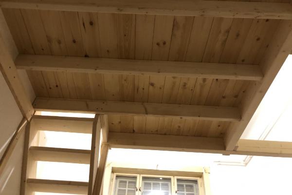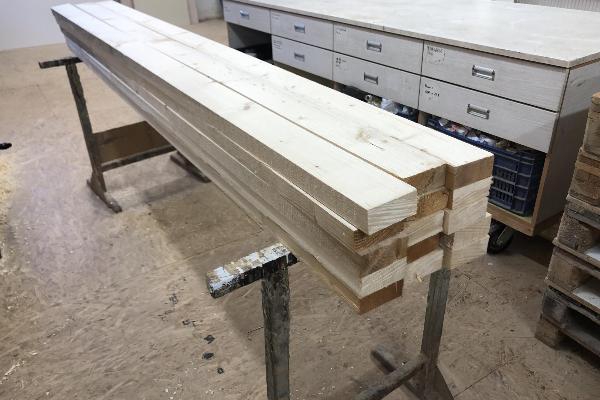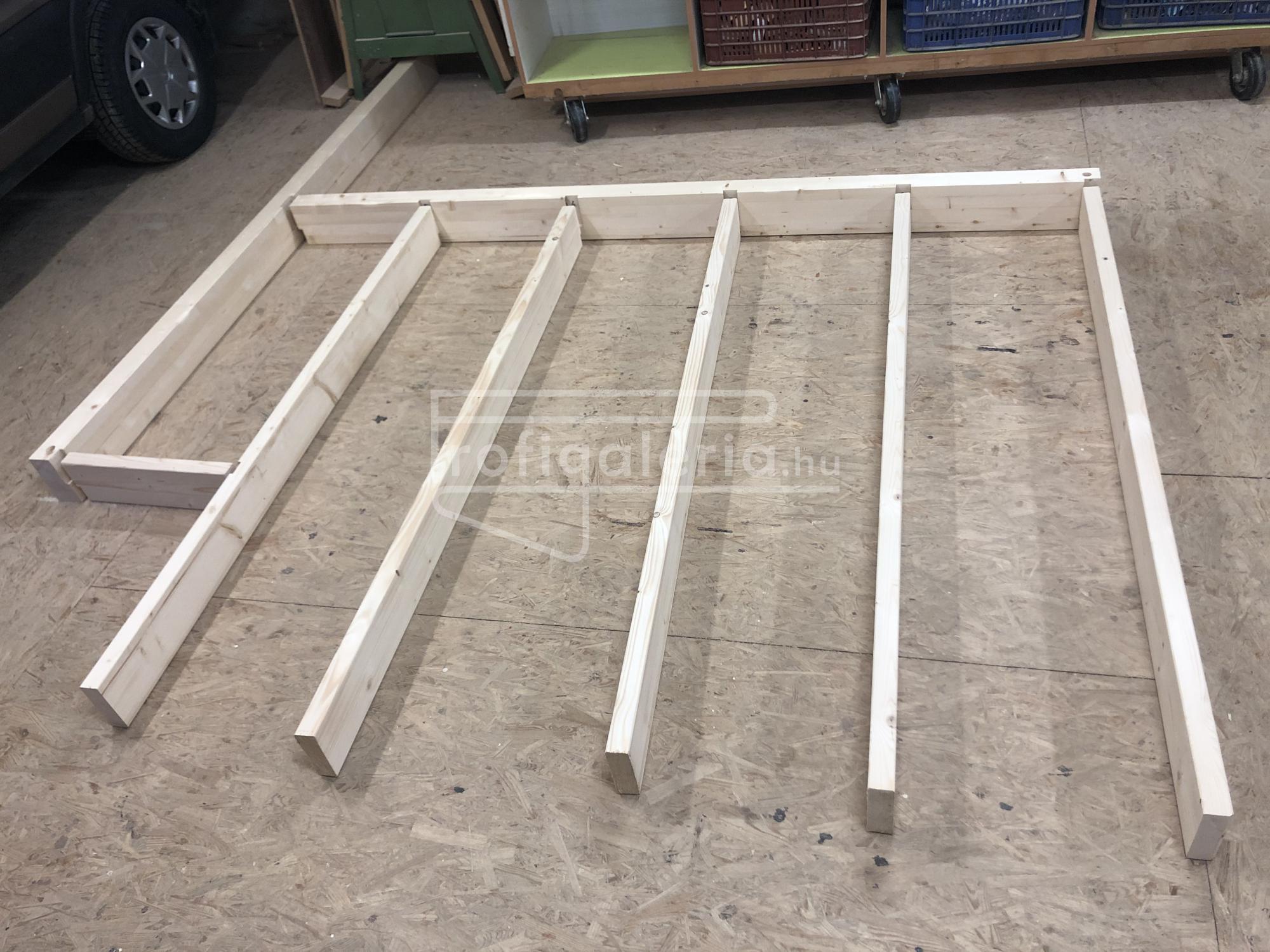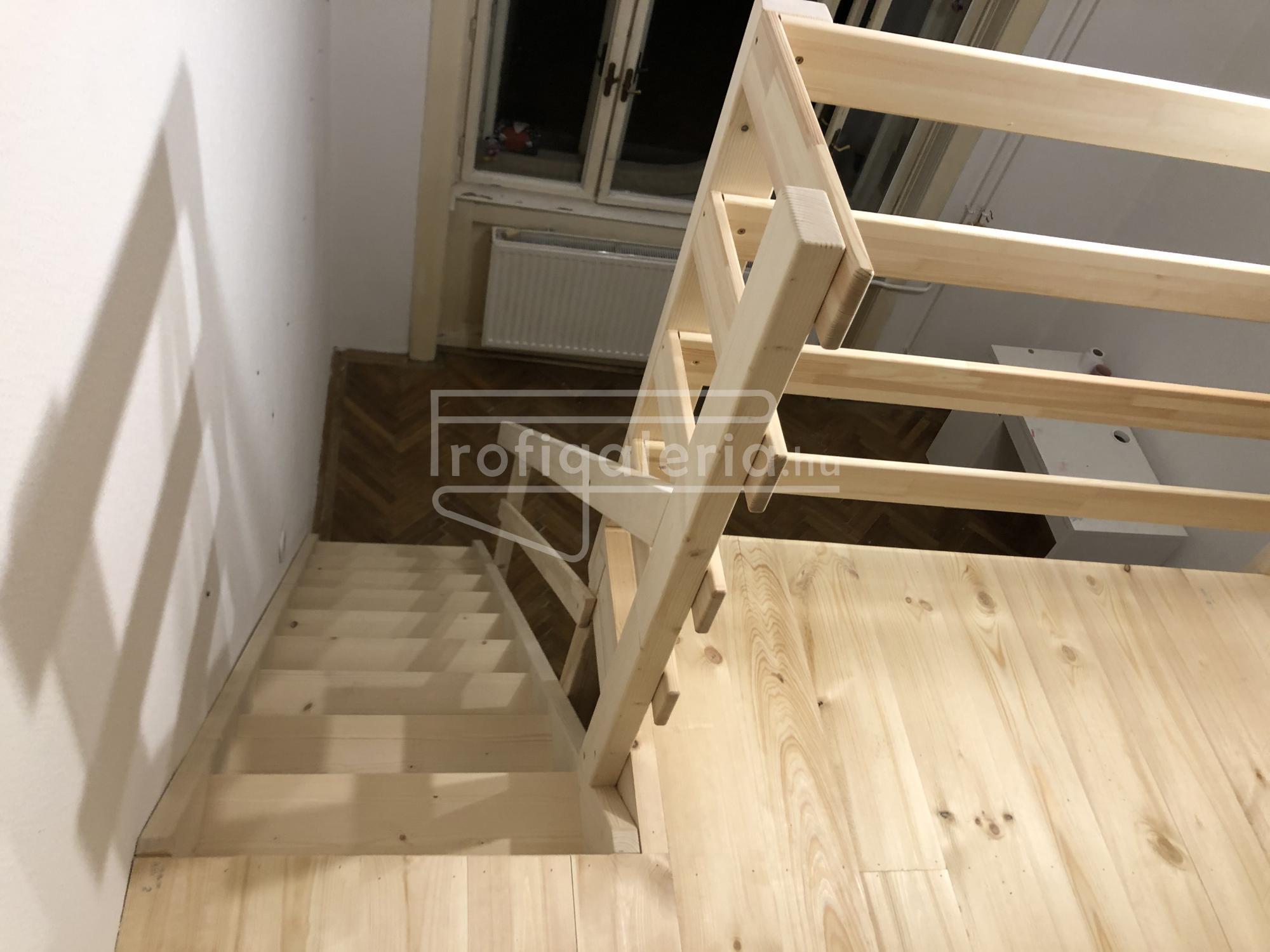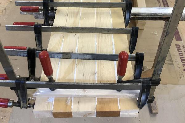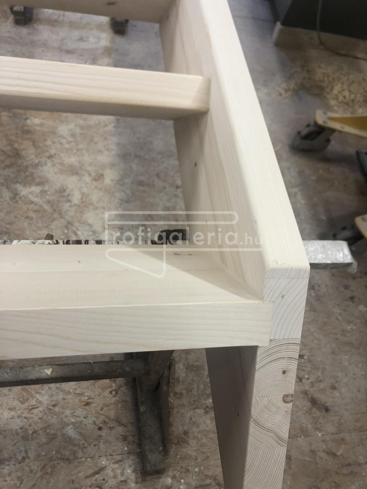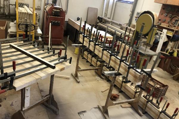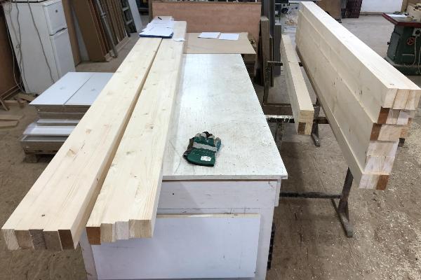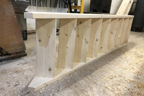 A galériákat saját magam készítem elő kiszállítás előtt. A fa sokkal stabilabb, ha több darabból van összeragasztva, ezért a legtöbb esetben ragasztott mestergerendát alkalmazok. Fesztávtól függően a kereszt gerendák is lehetnek ragasztottak. Ezeket a gerendákat vagy én ragasztom meg, vagy eleve ragasztott gerenda alapanyagból dolgozom. Akármelyik verzió mellett döntök, itt is a precizitást tartom az elsődleges szempontnak, ezért évekre előre fel van töltve a raktáram ragasztott és nem ragasztott áruval annak érdekében, hogy ne friss, hanem garantáltan száraz anyagból dolgozhassak. A ragasztásra váró fenyőáru felhasználás előtt 2-3 évet tölt egy nyáron 50-60 C°-os padláson, hogy garantáltan elveszítse a felhasználásig a faanyag a nem kívánt nedvességtartalmát, ezzel minimálisra csökkentem a vetemedés és a repedezés esélyét.