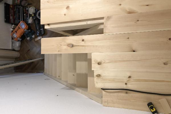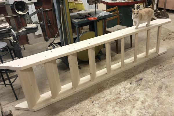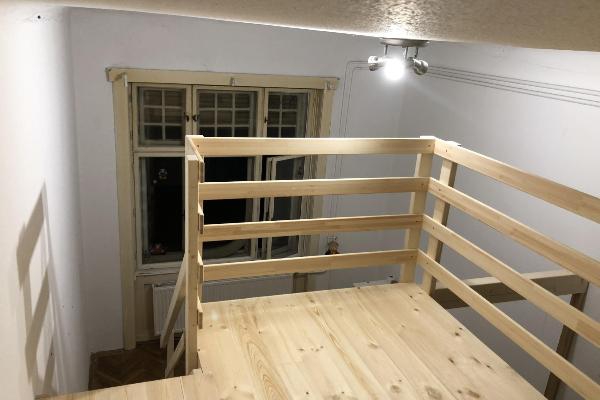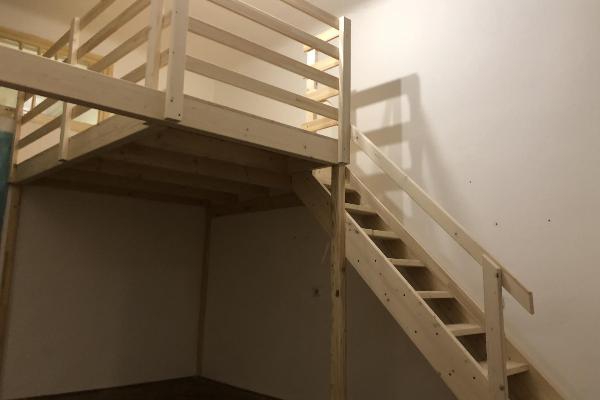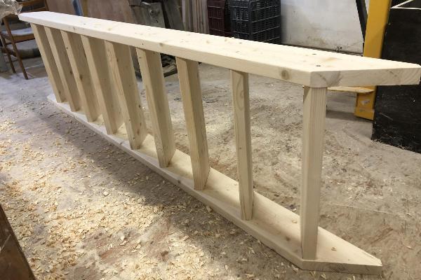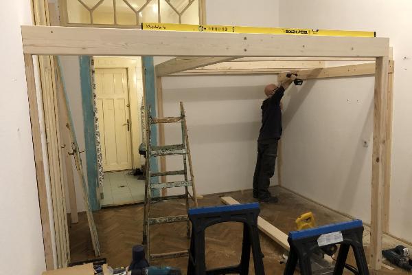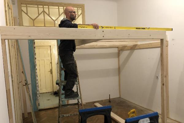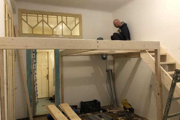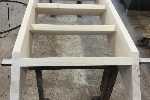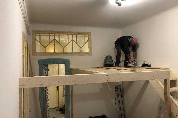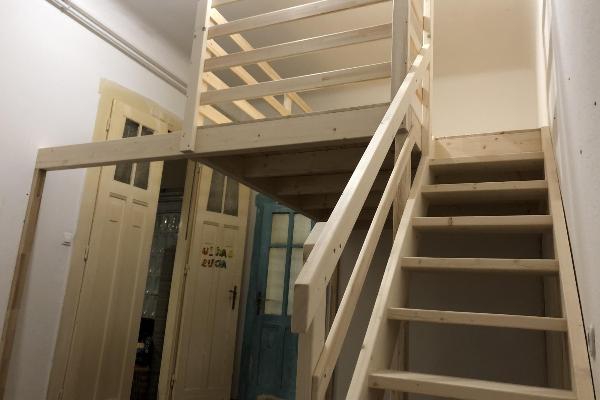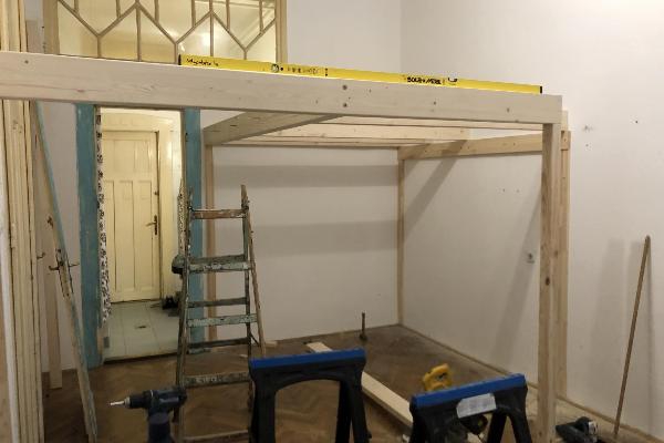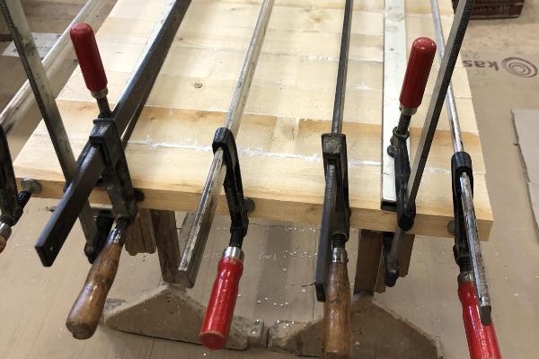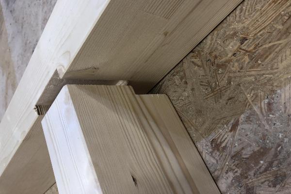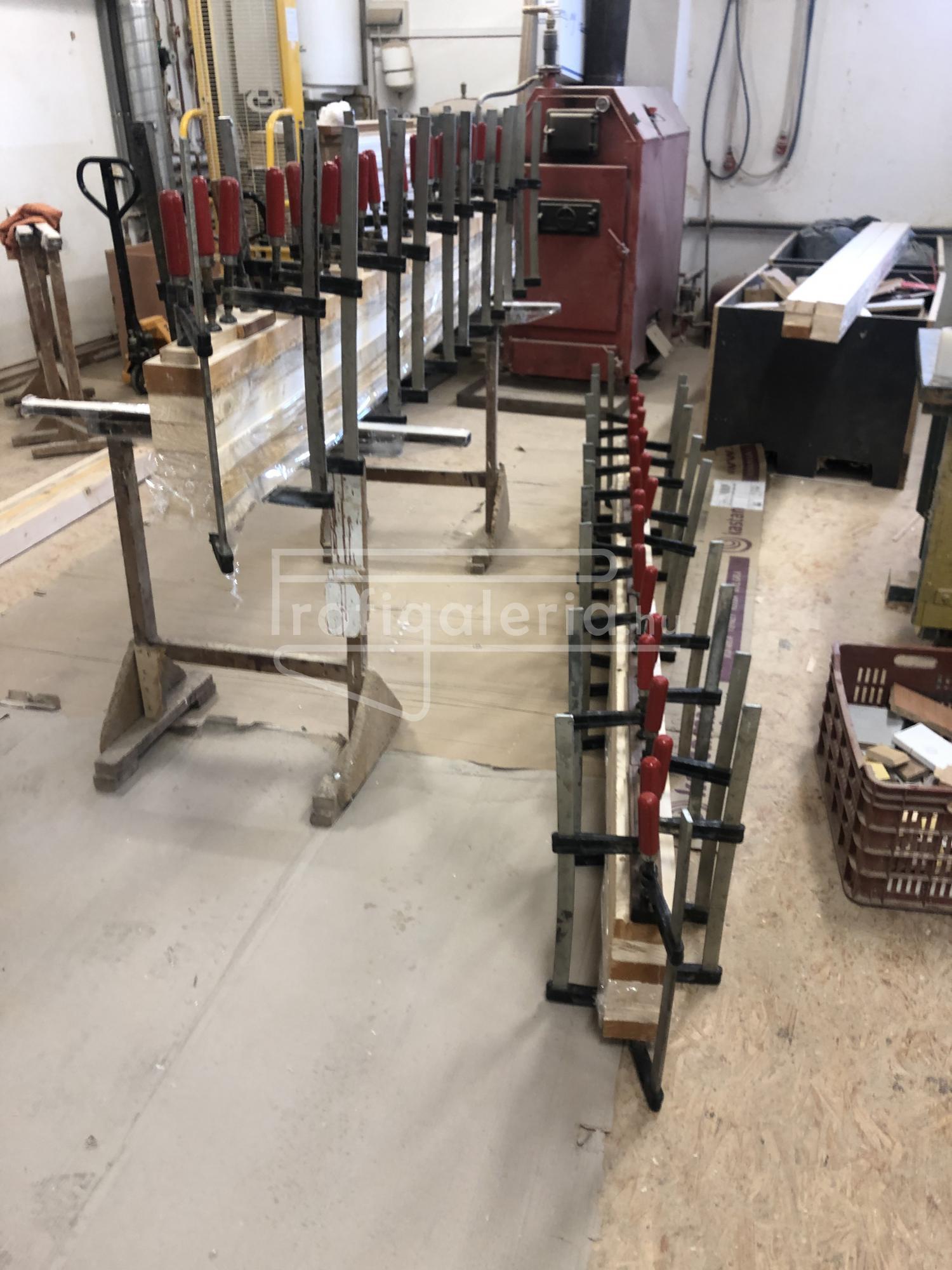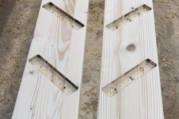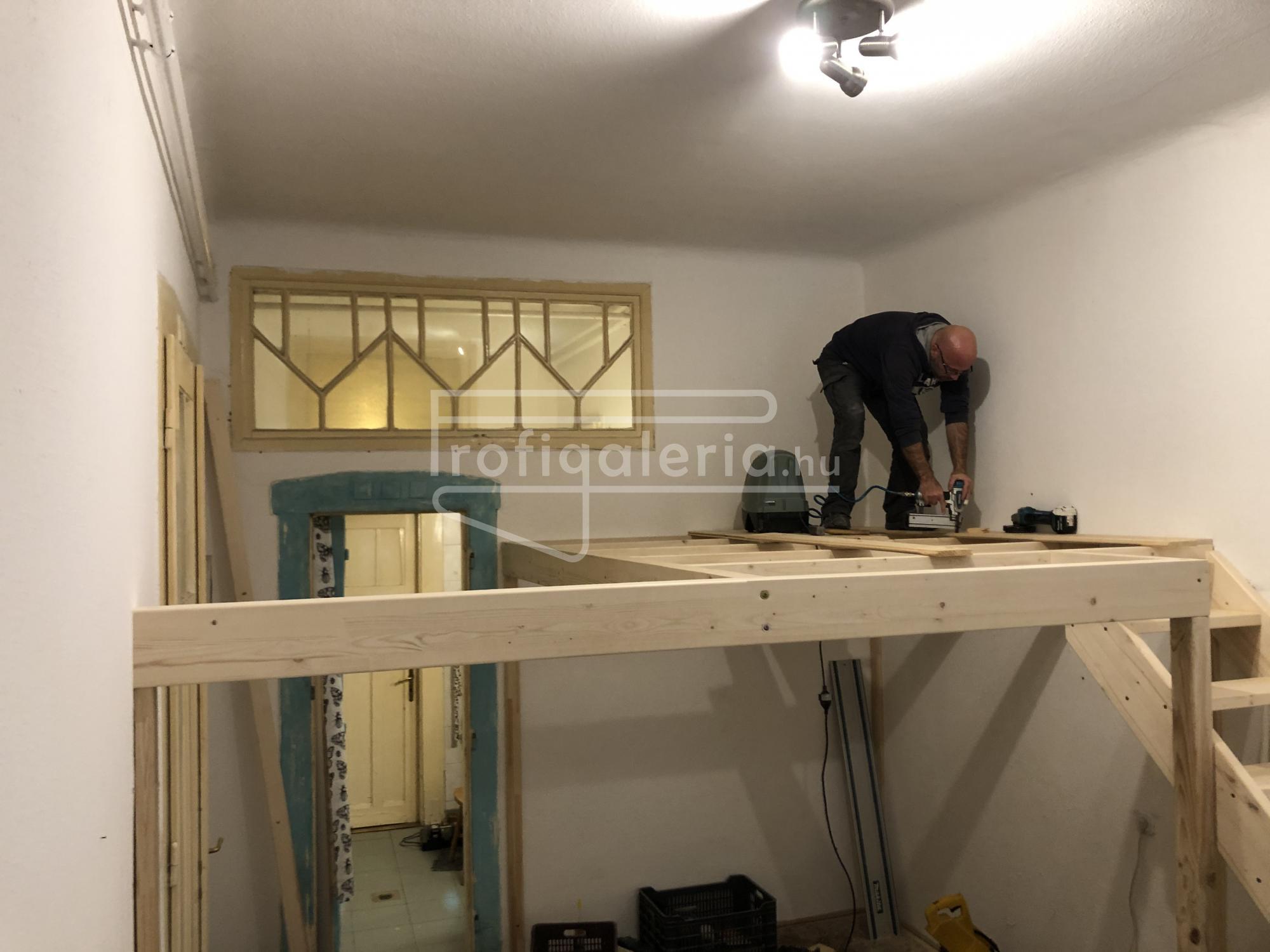 A galériákat saját magam készítem elő kiszállítás előtt. A fa sokkal stabilabb, ha több darabból van összeragasztva, ezért a legtöbb esetben ragasztott mestergerendát alkalmazok. Fesztávtól függően a kereszt gerendák is lehetnek ragasztottak. Ezeket a gerendákat vagy én ragasztom meg, vagy eleve ragasztott gerenda alapanyagból dolgozom. Akármelyik verzió mellett döntök, itt is a precizitást tartom az elsődleges szempontnak, ezért évekre előre fel van töltve a raktáram ragasztott és nem ragasztott áruval annak érdekében, hogy ne friss, hanem garantáltan száraz anyagból dolgozhassak. A ragasztásra váró fenyőáru felhasználás előtt 2-3 évet tölt egy nyáron 50-60 C°-os padláson, hogy garantáltan elveszítse a felhasználásig a faanyag a nem kívánt nedvességtartalmát, ezzel minimálisra csökkentem a vetemedés és a repedezés esélyét.